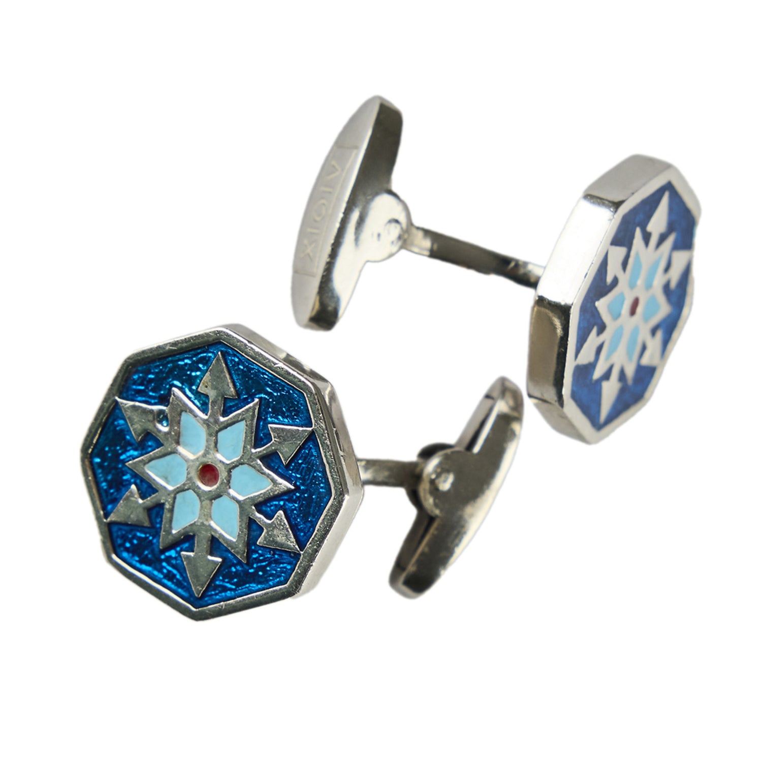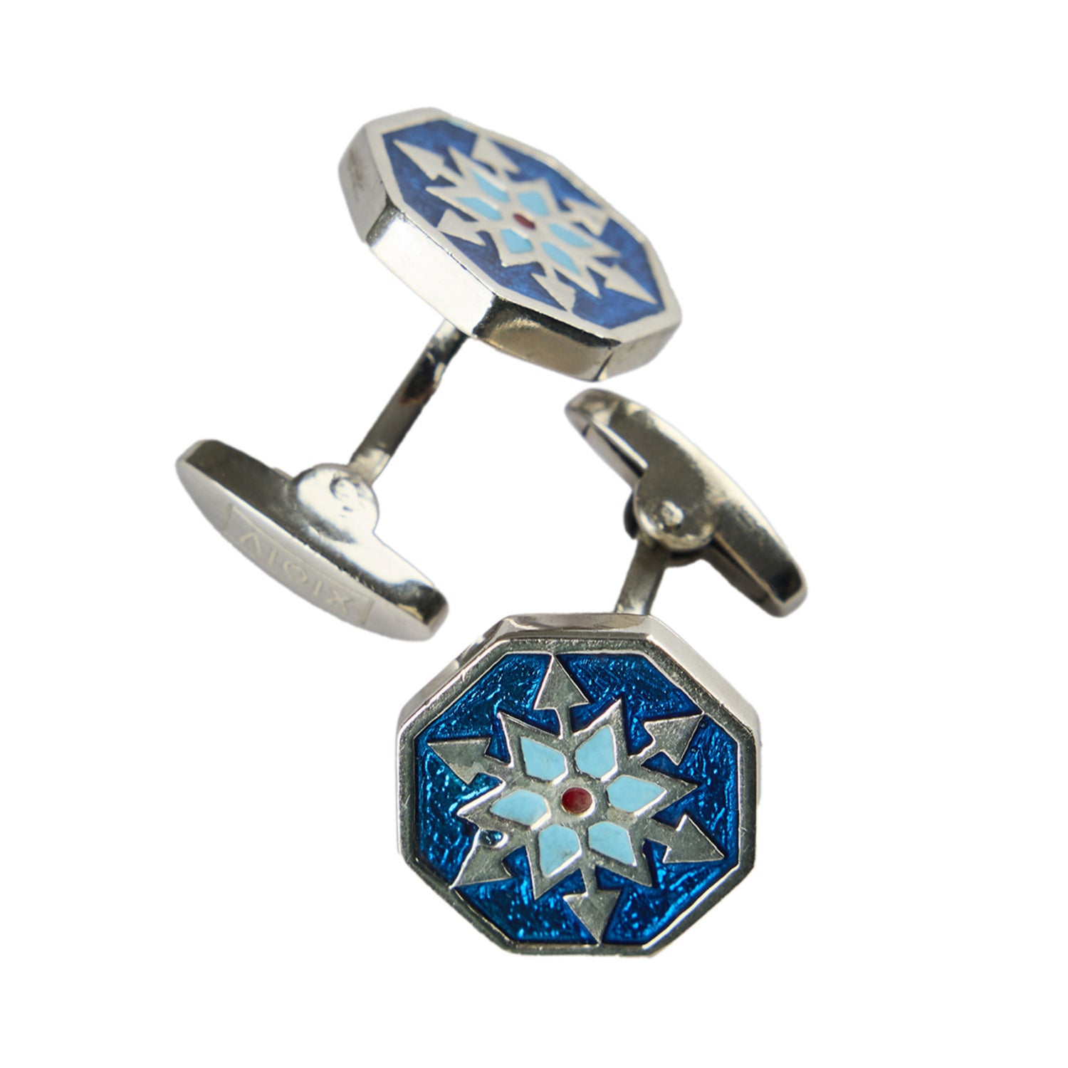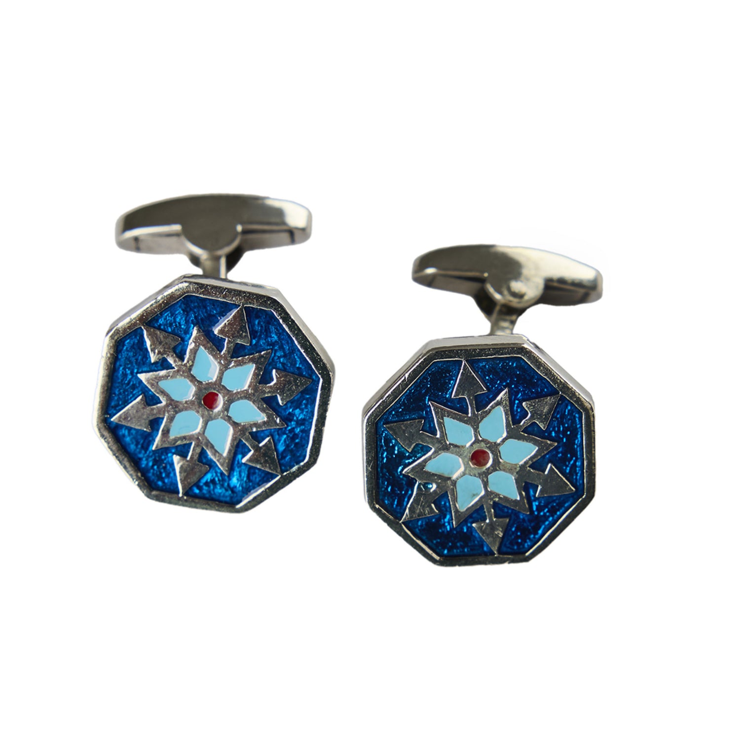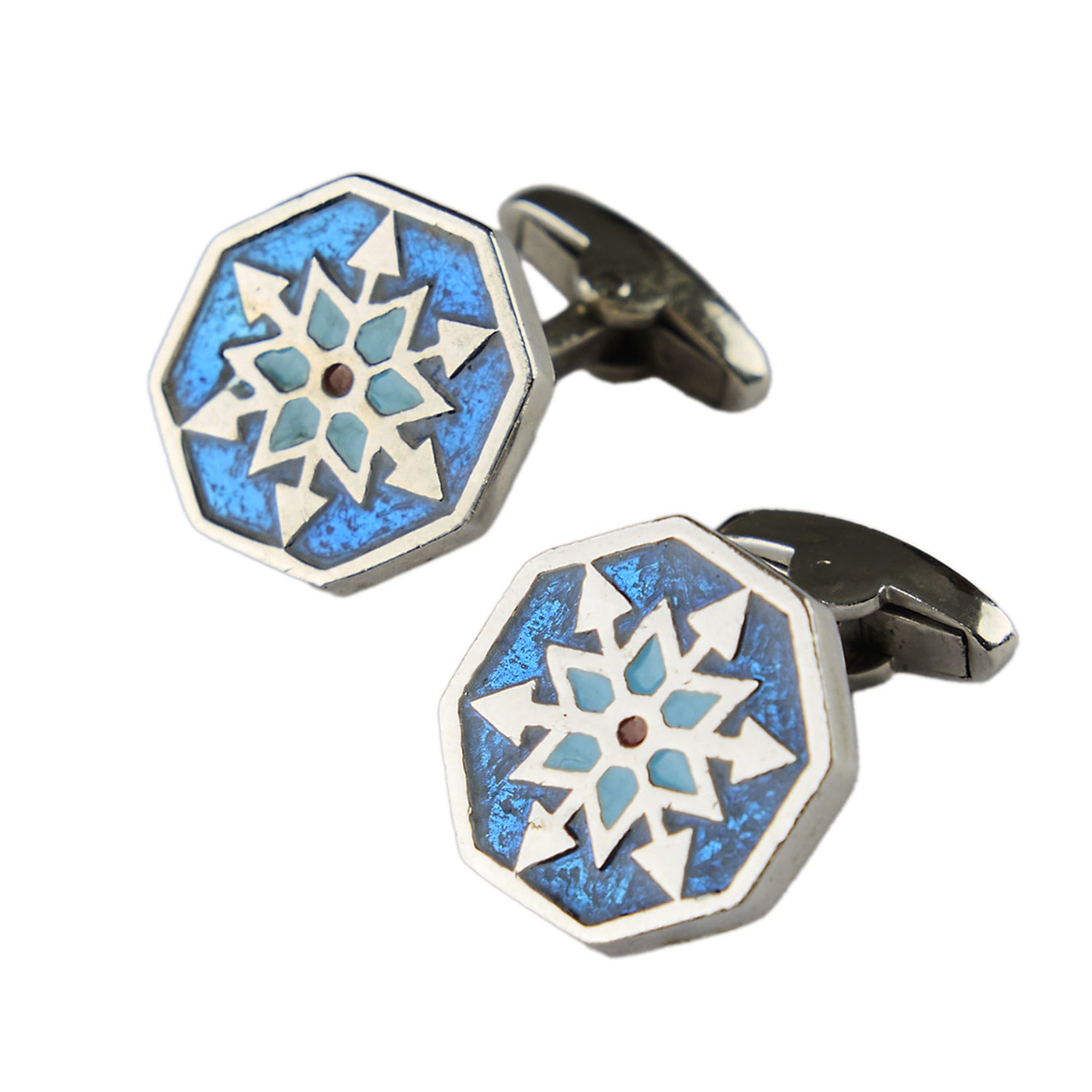Featuring our laser cut Shurikan star motifs that make up for 3 piece set of cufflinks with individual elements bringing it together with our hexagonal Enamel filling shaped set within a polished sterling silver case that has been engraved with our signature pattern filling it with multiple clours to give it that oomph. These cufflinks also feature a logo branded swivel whale tail sterling silver locking mechanism.